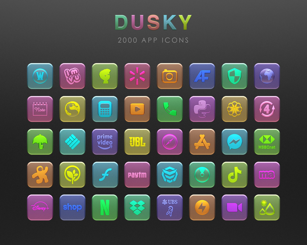 DUSKY iOS Theme, App Icons, iOS Icons, Transparent Icons, iPhone Icons, iPad Icons, iOS 16 Icons, Icon Pack, Colorful Theme, iOS 14 Icons