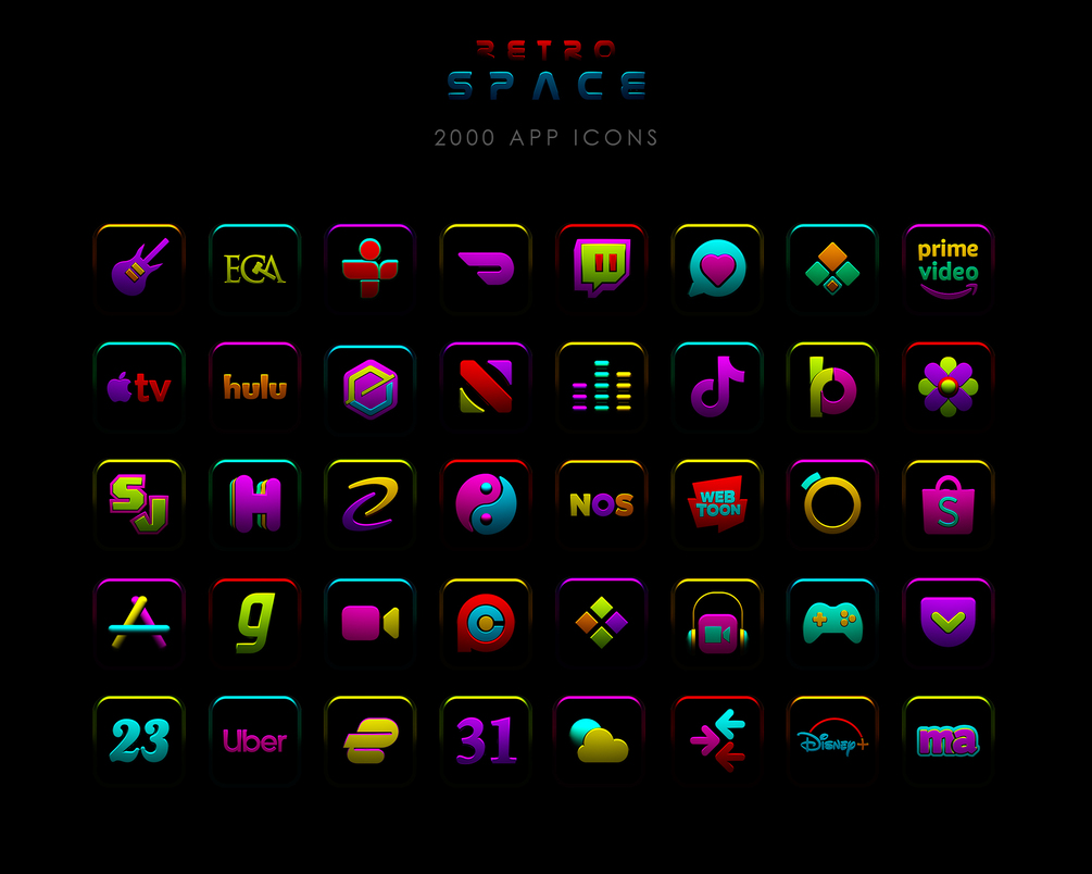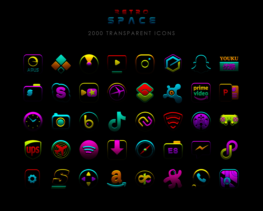 Retro Icons, iOS Theme, App Icons, Space Vintage, Transparent Icons, iOS 16 Icons, Android Icon Pack, IOS Icons, iPhone Icons, Black Icons